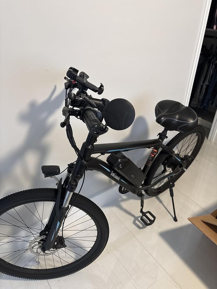 Experience the thrill of off-road cycling with this 26-inch electric mountain bike, powered by a robust 500W motor delivering speeds up to 20MPH. Designed for endurance, it offers a 28-mile range on a single charge, making it ideal for extended rides through varied terrain. Equipped with rugged off-road tires engineered for traction and control, this bike handles challenging surfaces with confidence. The integrated bright headlight and rear reflector system provide essential visibility during low-light conditions, enhancing safety on every journey. The responsive motor delivers consistent power whether you're climbing steep inclines or navigating technical trails, while the extended battery capacity ensures you can tackle longer adventures without frequent charging interruptions. Built for riders who prioritize both performance and dependability, this electric bike combines practical engineering with the capability to transform your outdoor exploration.