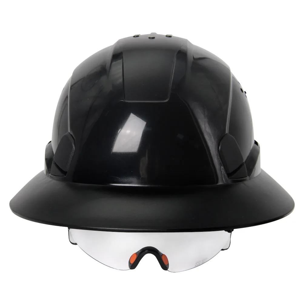 CE Full Brim Hard Hat with Built in Goggles for Construction Engineer Safety Helmet